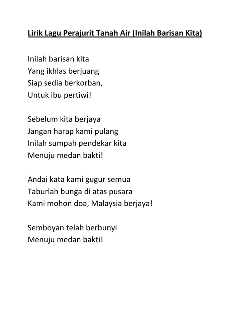 Lirik Lagu Perajurit Tanah Air Pdf